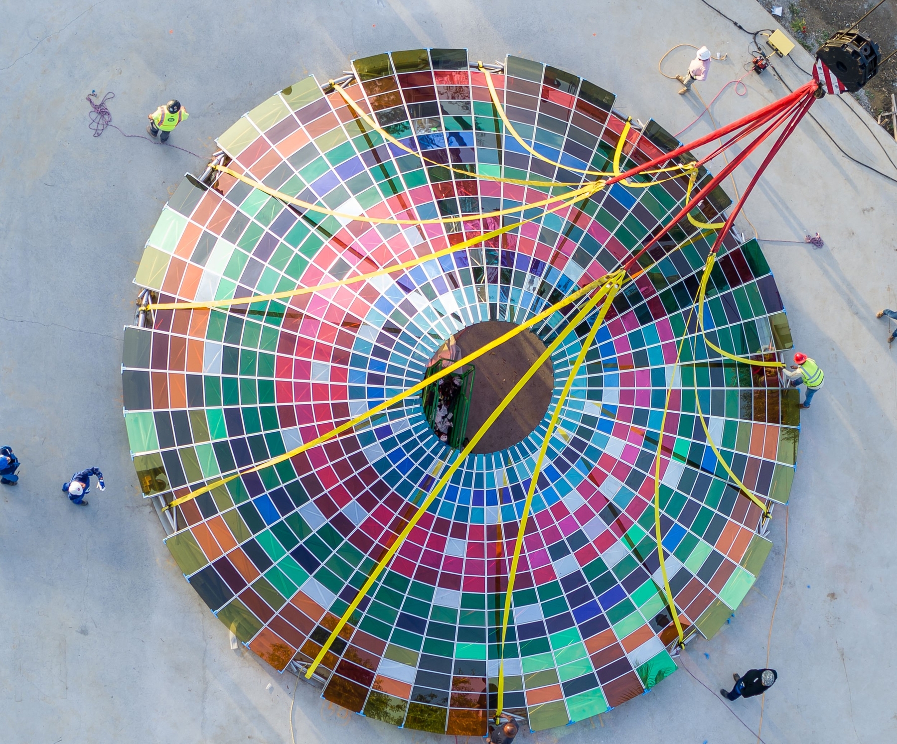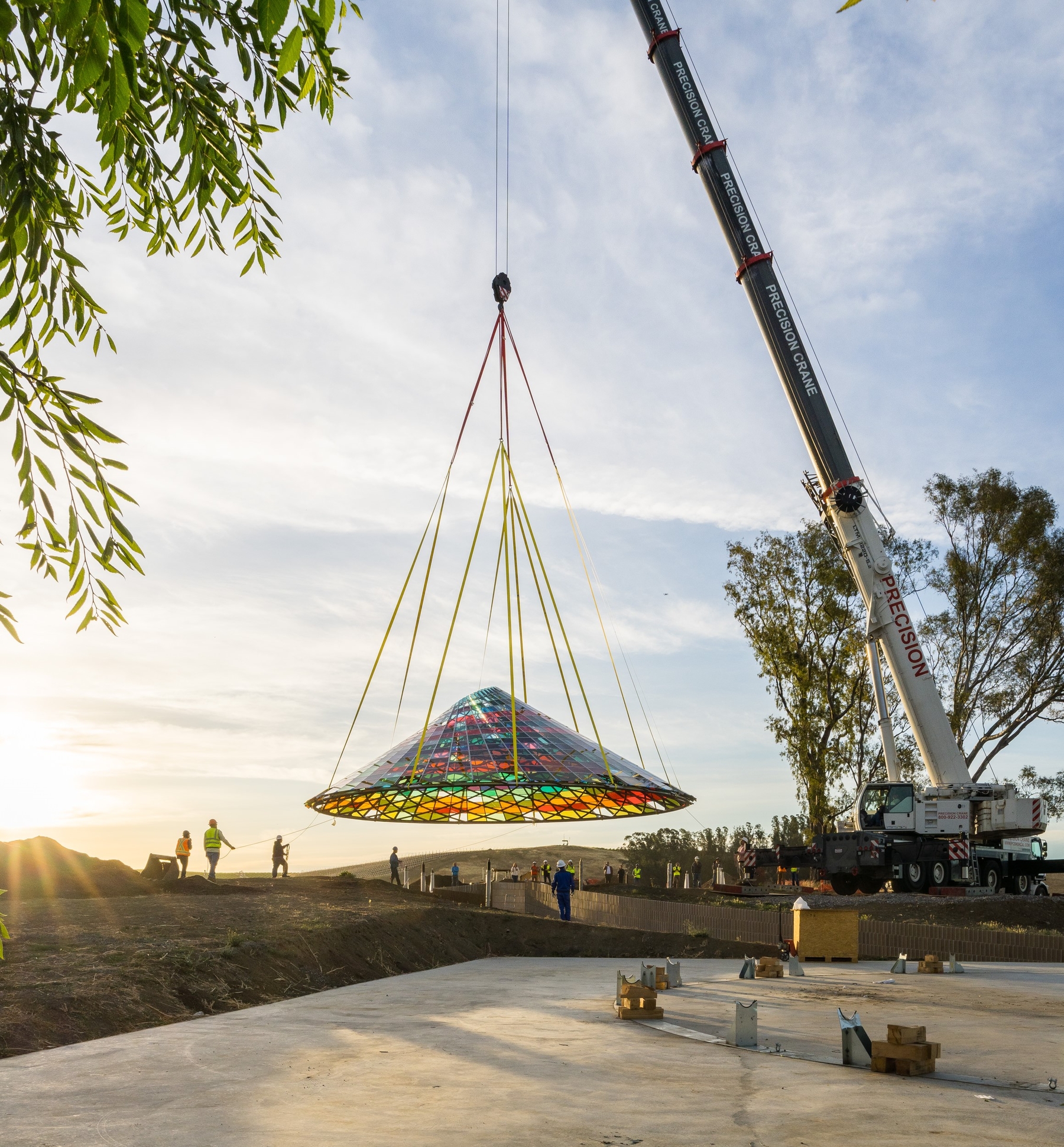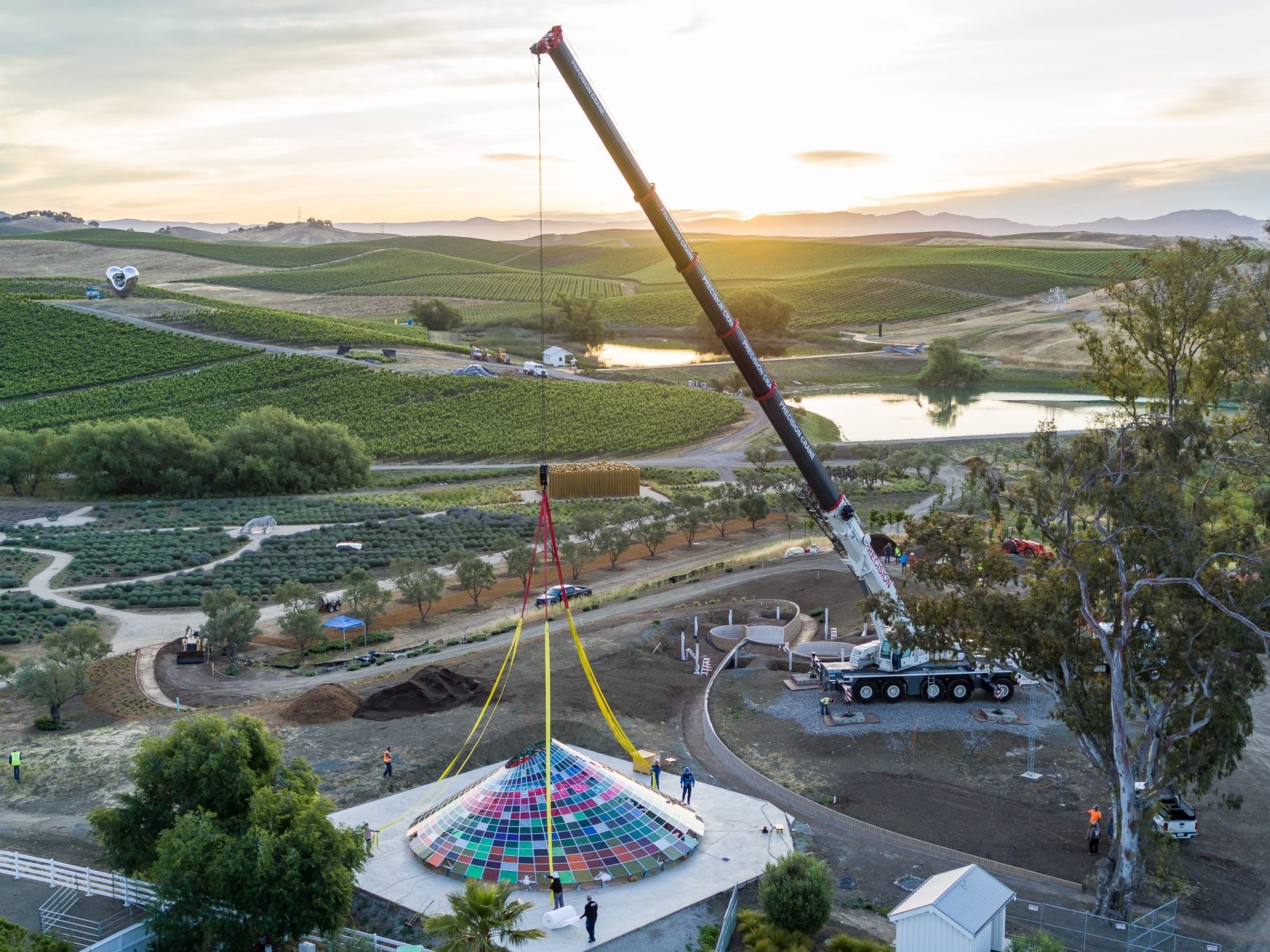 Vertical Panorama Pavilion is The Donum Estate’s newest bespoke architectural experience. Designed by Berlin-based firm Studio Other Spaces, founded by artist Olafur Eliasson and architect Sebastian Behmann, the conical canopy is composed of 832 multi-colored glass panels of varying hues and sizes. The new hospitality venue will offer a sensational experience for guests to enjoy the beauty of wine, nature, art and architecture in one holistic space.